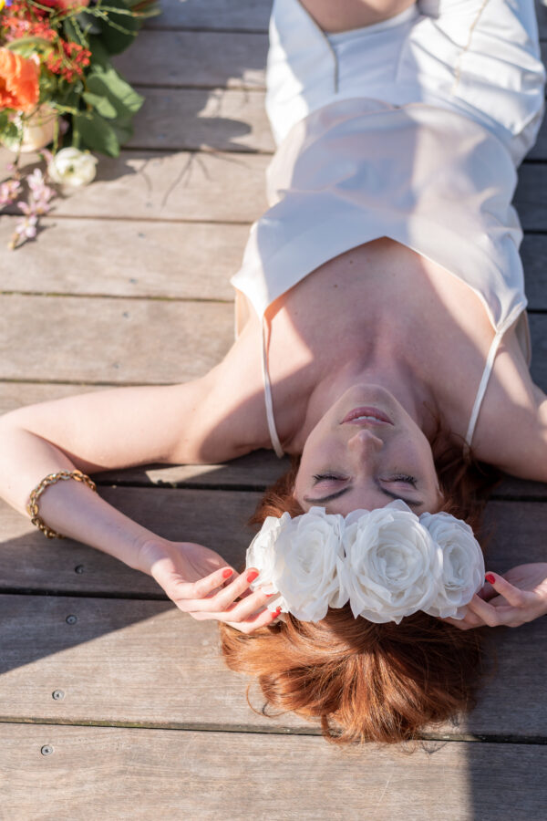 À l’atelier de mariée, parfois, il n’y a tout simplement plus de place pour tous les modèles créés avec soin. Chaque saison, les shootings, les défilés, et les salons de mariage nécessitent la conception de pièces uniques qui, une fois leur mission terminée, finissent par dormir dans les réserves de l’atelier. C’est vraiment dommage ! Ces créations, conçues avec passion et expertise, n’attendent qu’une chose : trouver une nouvelle vie auprès de futures mariées ou invitées.